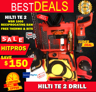 HILTI TE 2 DRILL, WSR 1000 RECIPROCATING SAW, NEW, FREE THERMO, BITS