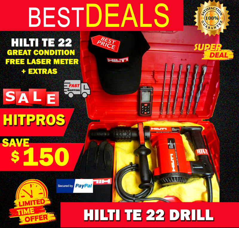 HILTI TE 22 DRILL, GREAT CONDITION, FREE LASER METER, EXTRAS