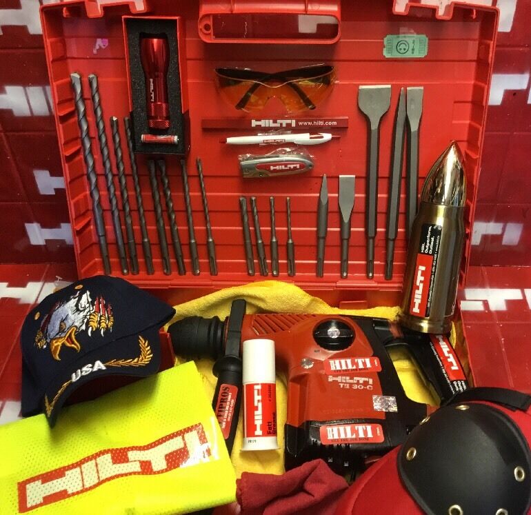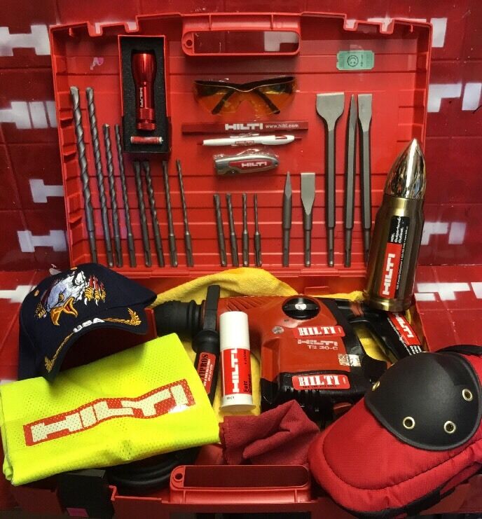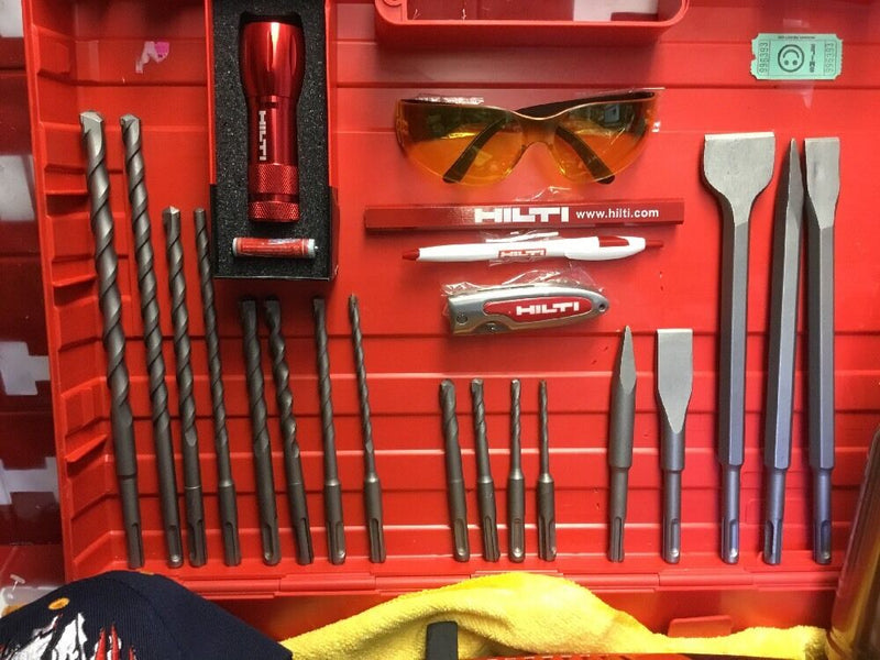THIS IS A GREAT SET TO HAVE AT WORK, THIS HILTI SET IS MADE TO GET THE JOB DONE QUICKLY AND EFFICIENTLY. FREE BITS AND CHISELS INCLUDED