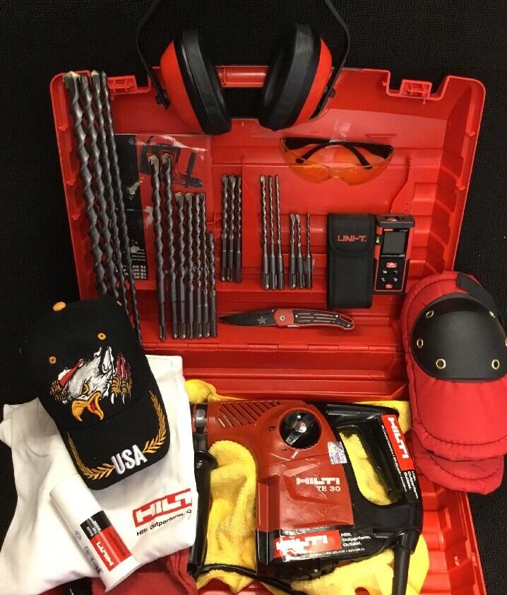 HILTI TE 30 ROTARY HAMMER DRILL PREOWNED . IT IS AN EXCELLENT TOOL TO GET YOUR JOB DONE QUICKLY. COMES WITH A LOT OF FREE STUFF: