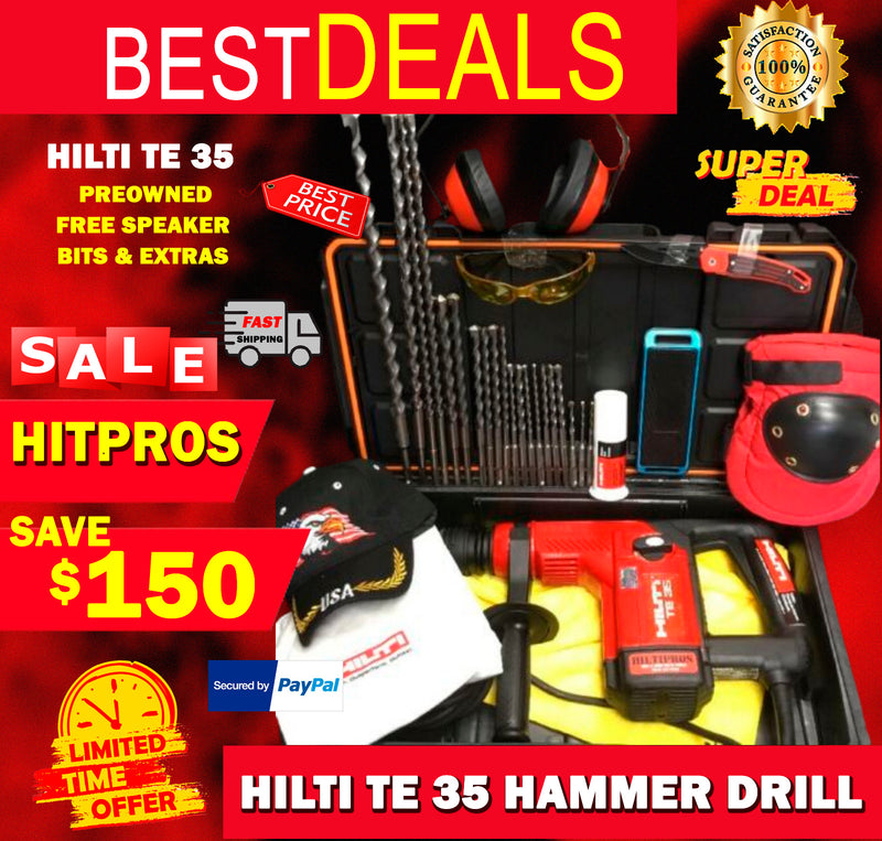 HILTI TE 35 HAMMER DRILL, PREOWNED, FREE SPEAKER, BITS, EXTRAS