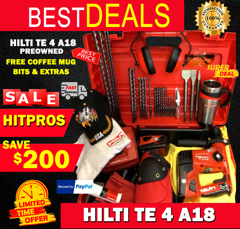 HILTI TE 4-A18 PREOWNED, FREE COFFEE MUG, BITS AND EXTRAS