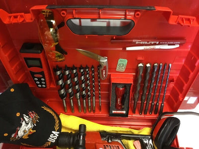 => HILTI pen, pencil, knife, flashlight, safety vest, grease and