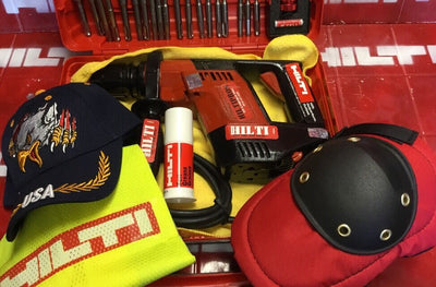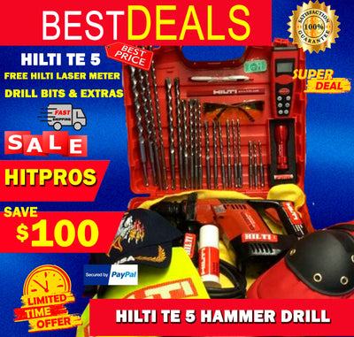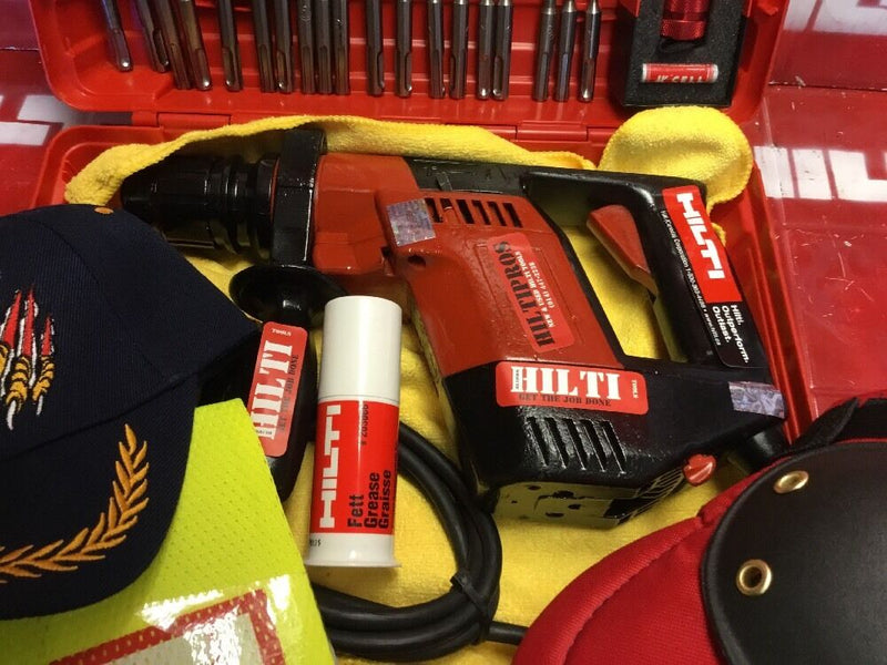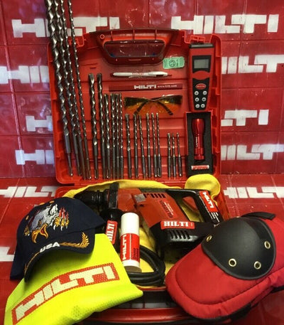 HILTI TE 5 HAMMER DRILL IN EXCELLENT CONDITION, MADE IN GERMANY TE 5 HAS BEEN AMONG THE CUSTOMERS FAVORITES TO GET YOU UP STARTED WE WILL INCLUDE A FREE SET OF BITS YOU WILL RECEIVE FREE ITEMS: 20 PCS SDS PLUS DRILL BIT SPECIFICATION: - 1 PC EACH: 5 X 4-1/4", 6 X 4-1/4", 8 X 4-1/4" - 2 PCS EACH: 6 X 6-1/4", 8 X 6-1/4", 10 X 6-1/4" - 1 PC EACH: 12 X 6-1/4" - 1 PC EACH: 8 X 8-1/4", 10 X 8-1/4", 12 X 8-1/4", 14 X 8-1/4" - 1 PC EACH: 14 X 10-1/4", 16 X 10-1/4" - 1 PC EACH: 10 X 18", 12 X 18", 16 X 18", 20 X 18"SAFETY VEST |