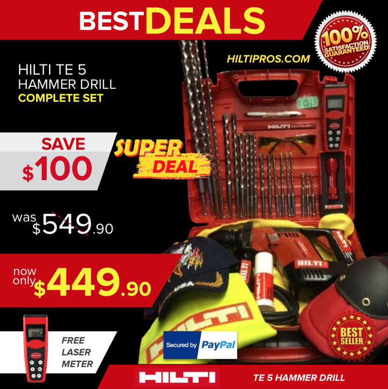 HILTI TE 5 HAMMER DRILL, FREE HILTI LASER, FREE DRILL BITS,