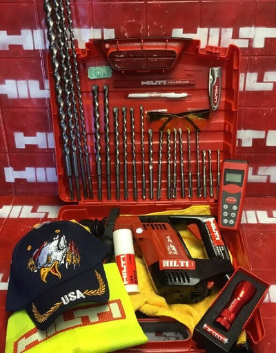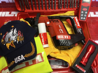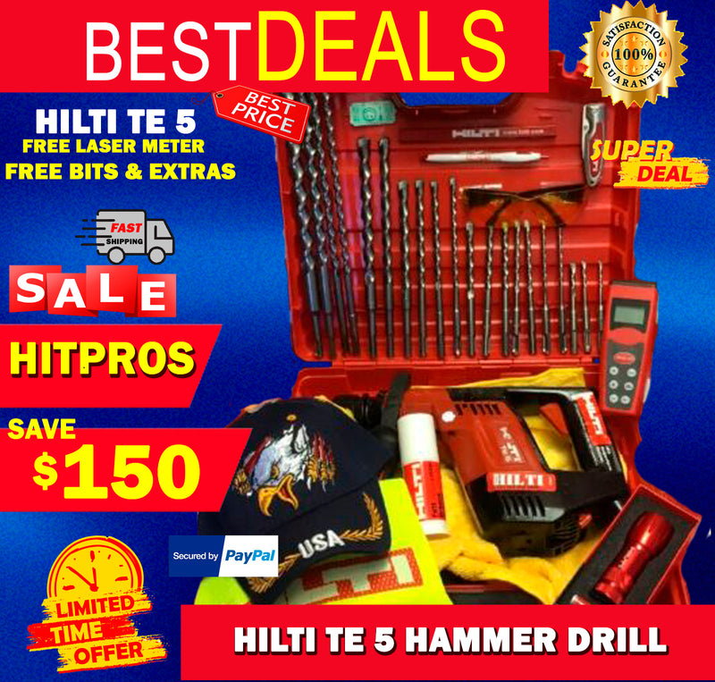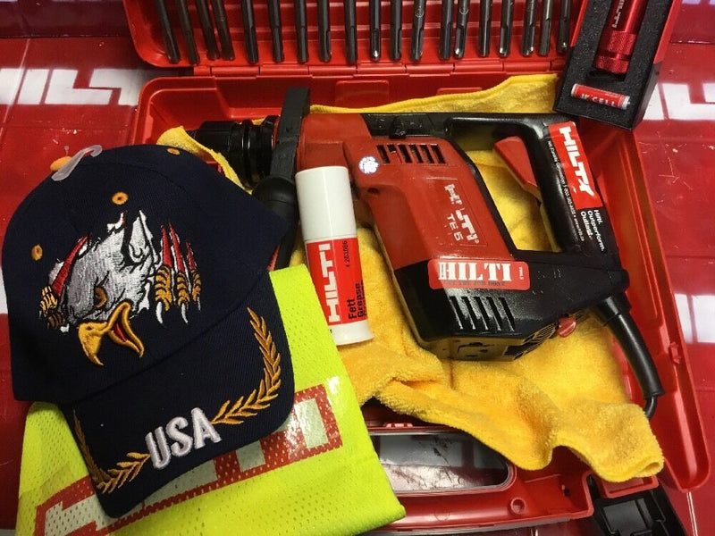 HILTI TE 5 HAMMER DRILL IN EXCELLENT CONDITION, MADE IN GERMANY TE 5 HAS BEEN AMONG THE CUSTOMERS FAVORITES TO GET YOU UP STARTED WE WILL INCLUDE A FREE SET OF BITS YOU WILL RECEIVE FREE ITEMS: 20 PCS SDS PLUS DRILL BIT SPECIFICATION: - 1 PC EACH: 5 X 4-1/4", 6 X 4-1/4", 8 X 4-1/4" - 2 PCS EACH: 6 X 6-1/4", 8 X 6-1/4", 10 X 6-1/4" - 1 PC EACH: 12 X 6-1/4" - 1 PC EACH: 8 X 8-1/4", 10 X 8-1/4", 12 X 8-1/4", 14 X 8-1/4" - 1 PC EACH: 14 X 10-1/4", 16 X 10-1/4" - 1 PC EACH: 10 X 18", 12 X 18", 16 X 18", 20 X 18"SAFETY VEST |