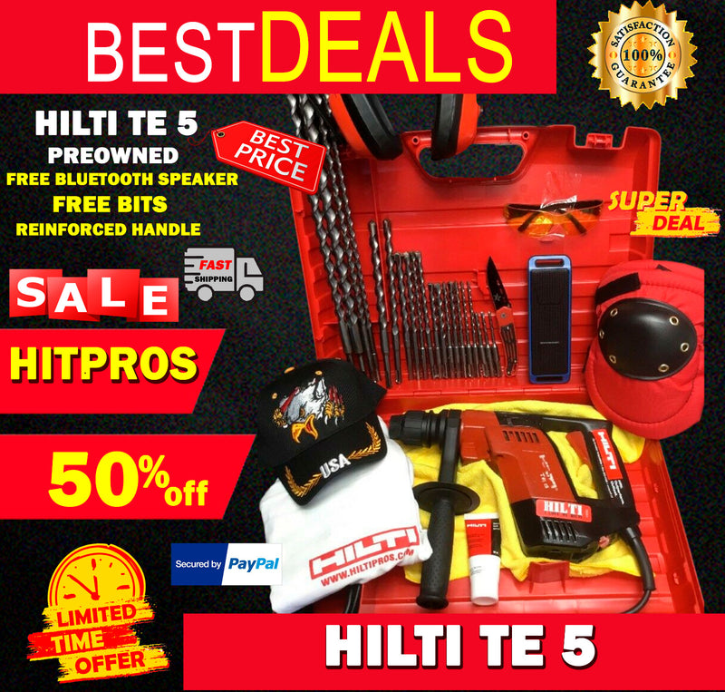 HILTI TE 5 PREOWNED, FREE BLUETOOTH SPEAKER, REINFORCED HANDLE, BITS