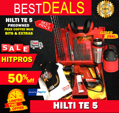 HILTI TE 5 PREOWNED, FREE COFFEE MUG, BITS, LOT OF EXTRAS