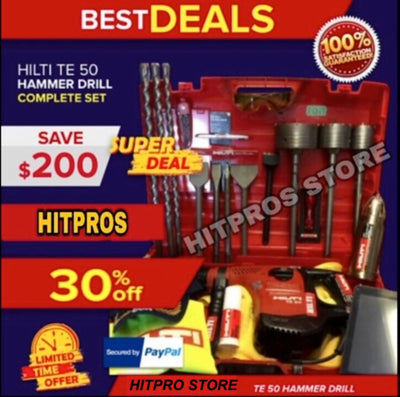 HILTI TE 50 PREOWNED, EXCELLENT CONDITION, LOAD, FREE EXTRAS, DURABLE, FAST SHIPPING, LOAD, FREE EXTRAS, DURABLE, FAST SHIPPING, HAVE HEAVY DUTY, LOADED WITH FREE EXTRAS , COMES WITH A LOT ACCESSORIES SO YOU CAN DO ANY JOB FAST.