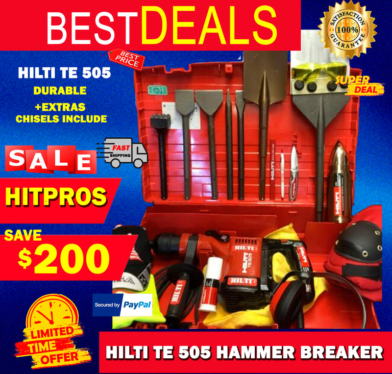 HILTI TE 505, L@@K, BREAKER, CHISELS INCLUDE, FREE EXTRAS, DURABLE, FAST SHIP