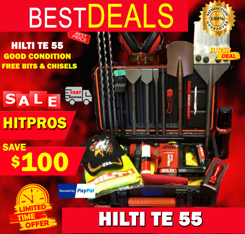 HILTI TE 55 HAMMER DRILL AND CHISELS, WORKS LIKE NEW!