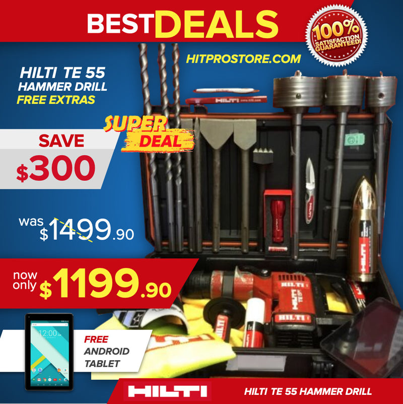 HILTI TE 55 HAMMER DRILL, FREE PAD AND EXTRAS, STRONG, GERMANY