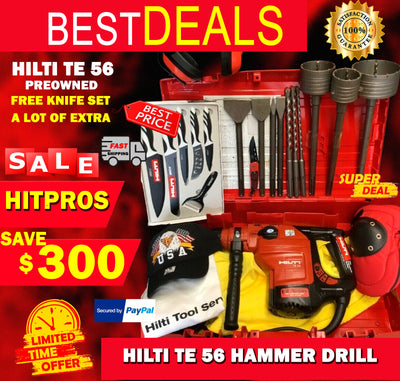 HILTI TE 56 HAMMER DRILL, PREOWNED, FREE KNIFE SET, A LOT OF EXTRAS, FAST SHIP
