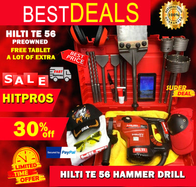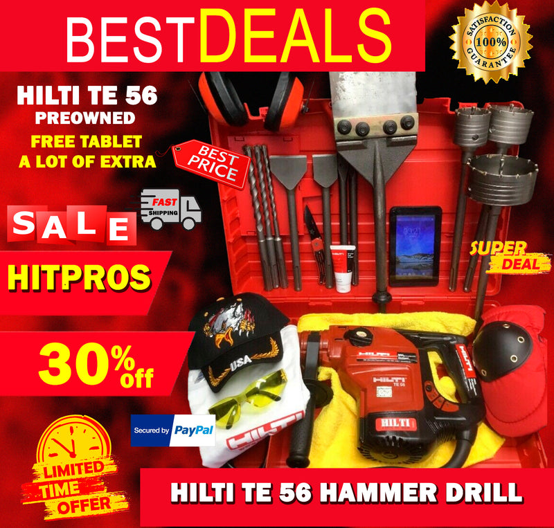 HILTI TE 56 HAMMER DRILL, PREOWNED, FREE TABLET, A LOT OF EXTRAS, QUICK SHIP