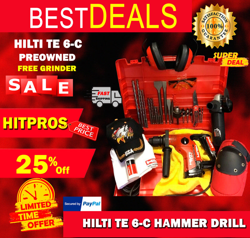 HILTI TE 6-C HAMMER DRILL, PREOWNED, FREE GRINDER, LOT OF EXTRAS, FAST SHIP