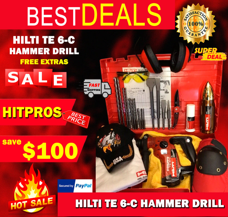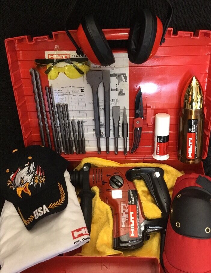 HILTI TE 6-C HAMMER DRILL, PREOWNED, FREE THERMO, LOT OF EXTRAS