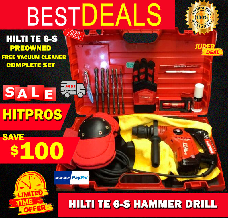 HILTI TE 6-S HAMMER DRILL, PREOWNED, FREE VACUUM, EXTRAS