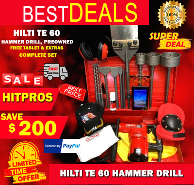 HILTI TE 60 HAMMER DRILL, PREOWNED, GERMANY MADE, FREE TABLET, EXTRAS