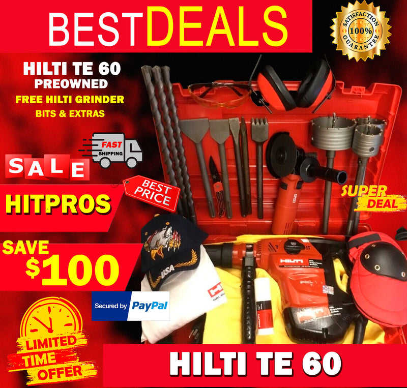 HILTI TE 60, PREOWNED, FREE HILTI GRINDER, BITS, EXTRAS