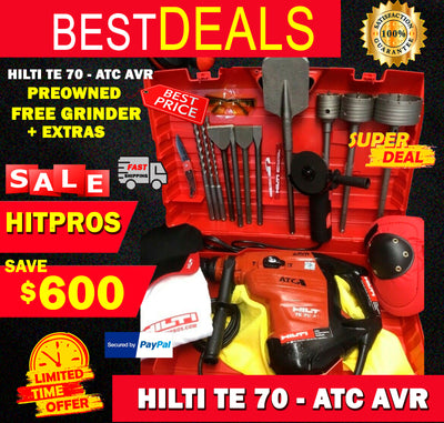 HILTI TE 70 ATC AVR, PREOWNED, FREE GRINDER, BITS, CHISELS, EXTRAS
