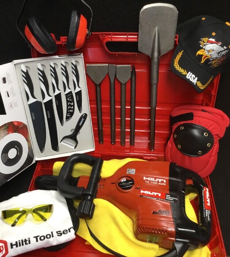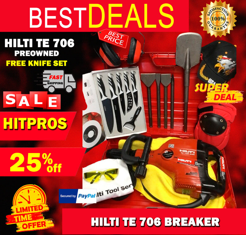 HILTI TE 706 BREAKER, PREOWNED, FREE KNIFE SET, CHISELS, EXTRAS