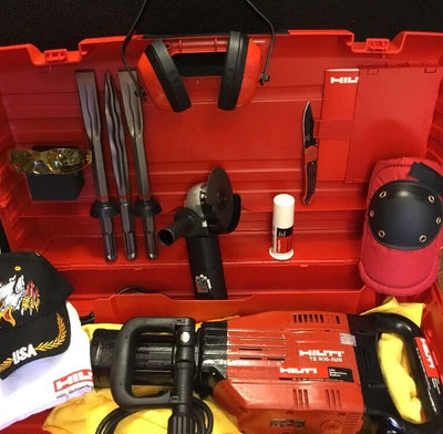 HILTI TE 905-AVR, PREOWNED, FREE ANGLE GRINDER, CHISELS, PLUS EXTRAS, FAST SHIP