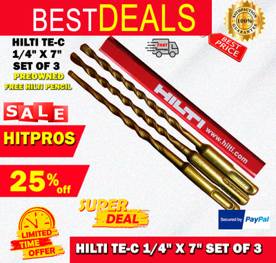 HILTI TE-C 1/4" X 7", SET OF 3, PREOWNED, MINT CONDITION, FREE PENCIL, FAST SHIP