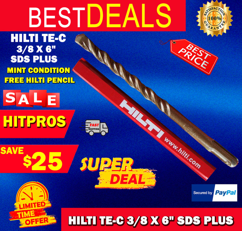 HILTI TE-C 3/8 x 6", SDS PLUS, PREOWNED,FREE HILTI PENCIL,L@@K, FAST SHIPPING