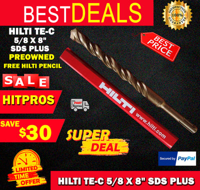 HILTI TE-C 5/8 x 8", SDS PLUS, PREOWNED,FREE HILTI PENCIL,L@@K, FAST SHIPPING