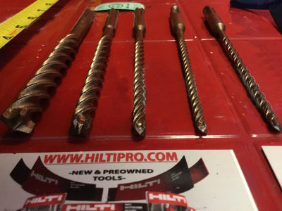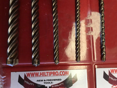 THIS HILTI SET OF 5 BITS IS PREOWNED, BUT IN MINT CONDITION! I HAVE NEVER USED THESE BITS. IT HAS SOME LIGHT WEAR FROM BEING ON THE SHELF. BUT OTHERWISE THEY ARE PERFECT AND READY FOR USE. THESE BITS ARE HEAVY DUTY AND WILL LAST YOU A LONG TIME JUST LIKE ANY OTHER HILTI. WE ARE INCLUDING A FREE BRAND NEW HAT!