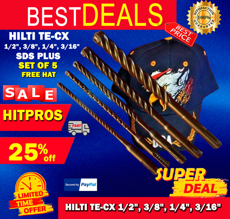 HILTI TE-CX 1/2", 3/8", 1/4", 3/16" SDS PLUS, SET OF 5, FREE HAT, FAST SHIPPING