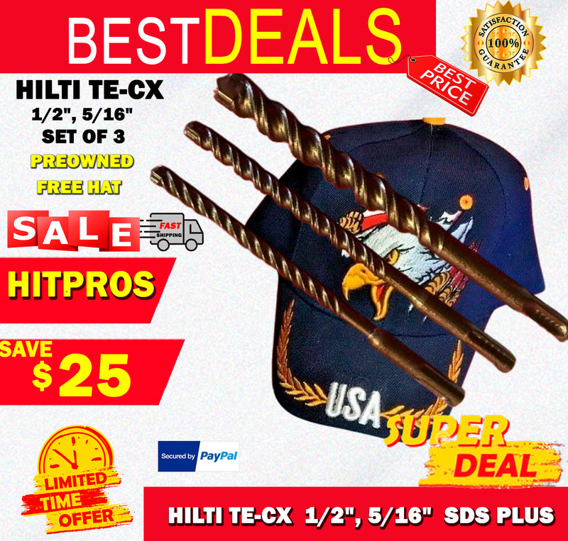 HILTI TE-CX 1/2", 5/16" SDS PLUS, L@@K, SET OF 3, PREOWNED, FREE HAT, FAST SHIP
