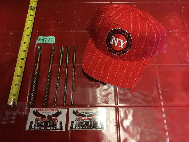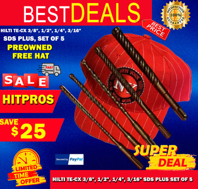 THIS HILTI SET OF 5 BITS IS PREOWNED, BUT IN MINT CONDITION! I HAVE NEVER USED THESE BITS. IT HAS SOME LIGHT WEAR FROM BEING ON THE SHELF. BUT OTHERWISE THEY ARE PERFECT AND READY FOR USE. THESE BITS ARE HEAVY DUTY AND WILL LAST YOU A LONG TIME JUST LIKE ANY OTHER HILTI. WE ARE INCLUDING A FREE BRAND NEW HAT!