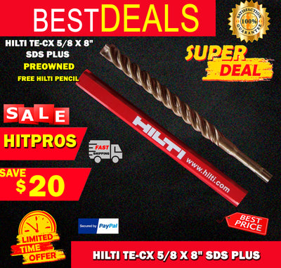 HILTI TE-CX 5/8 x 8", SDS PLUS, PREOWNED,FREE HILTI PENCIL,L@@K, FAST SHIPPING