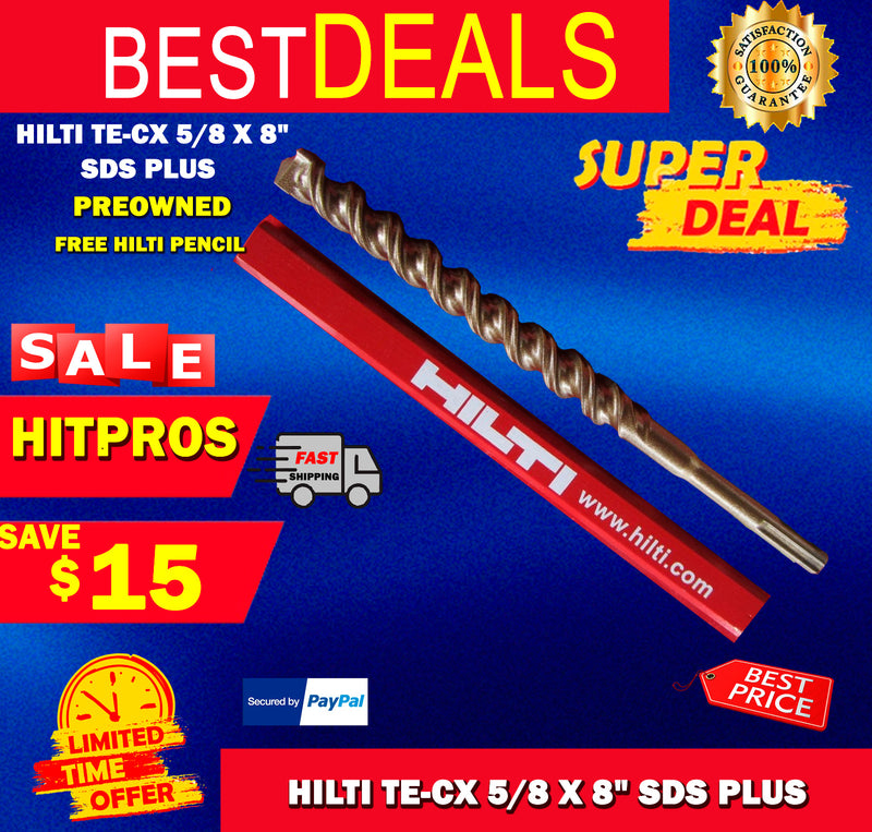 HILTI TE-CX 5/8 x 8", SDS PLUS, PREOWNED,FREE HILTI PENCIL,L@@K, FAST SHIPPING