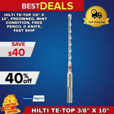HILTI TE-TOP 3/8" X 10", PREOWNED,MINT CONDITION, FREE PENCIL & KNIFE, FAST SHIP
