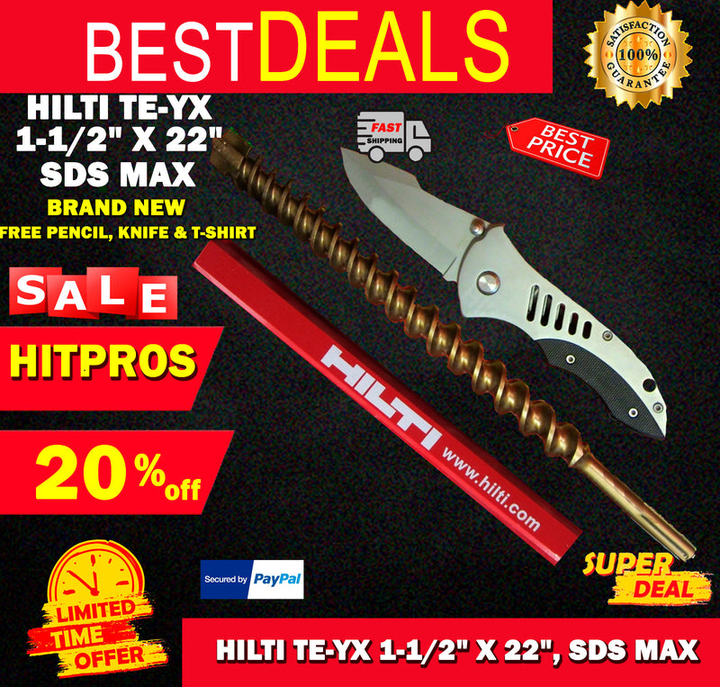 HILTI TE-YX 1-1/2" X 22", SDS MAX, BRAND NEW, FREE T-SHIRT, L@@K, FAST SHIP