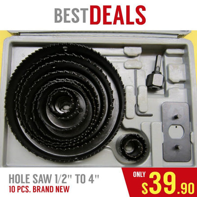HOLE SAW 10 PCS 1/2" TO 4" VERY NICE COMBO , TO USE EVER DAY, THE BEST THING IS CAMES ALL SIZES , PLUS FREE SHIPPING