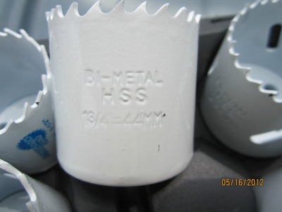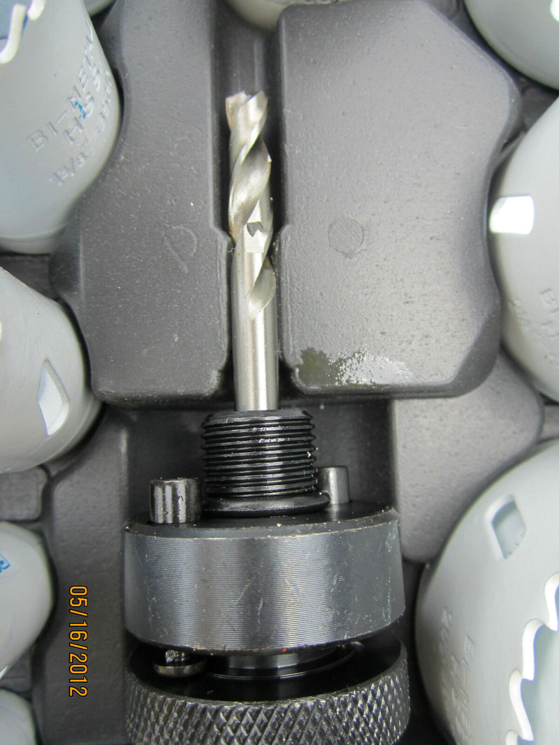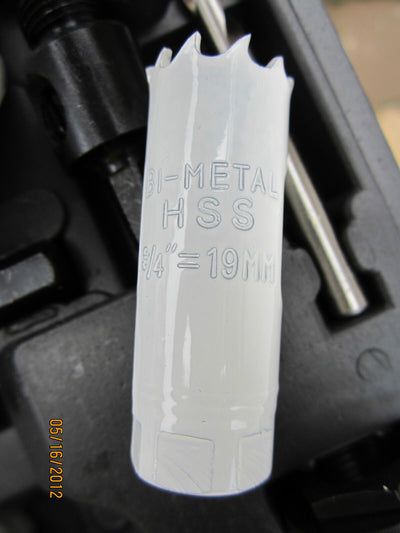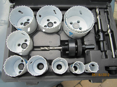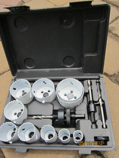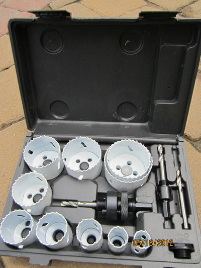 Includes: 3/4", 7/8", 1-1/8", 1-3/8", 1-1/2", 1-3/4", 2", 2-1/8", 2-1/4", 2-1/2" hole saws, one small mandrel, one large mandrel, one HSS W4 pilot drill, organized blow mold case |