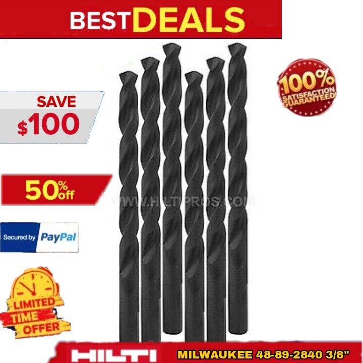 Milwaukee 48-89-2840 3/8" Thunderbolt Black Oxide Drill Bit, 6-Pack, FAST SHIP