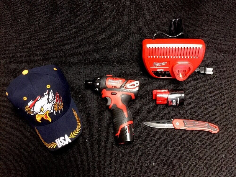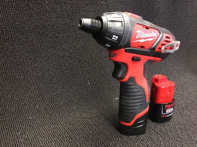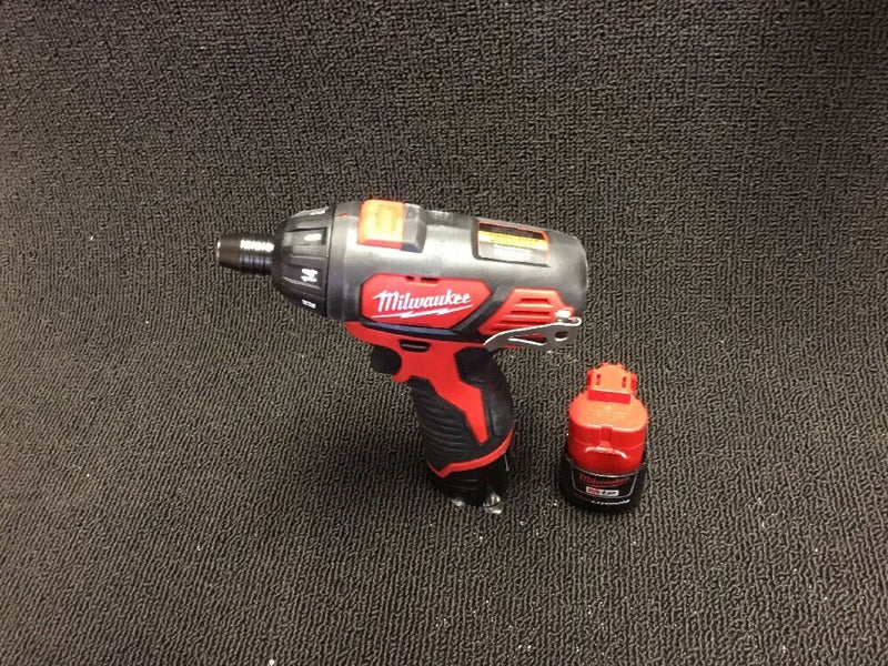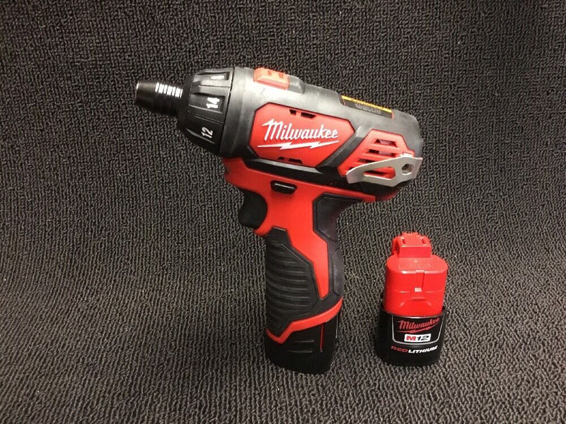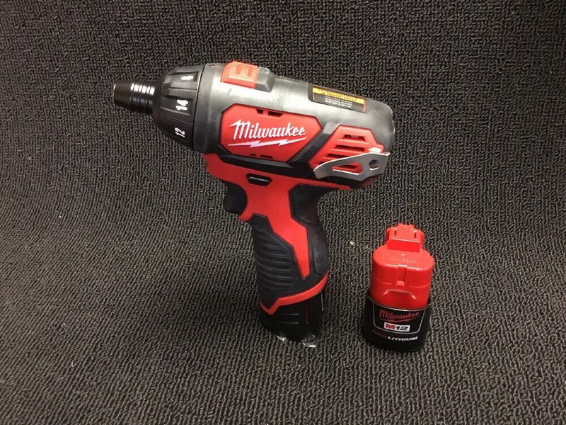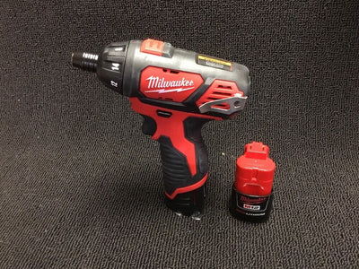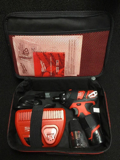 The new Milwaukee M12™ Screwdriver has the power to drive the majority of common small fasteners, and the run-time of full day screw driving without recharging. The compact size allows the users to work in tight places for increased convenience. Comes With Standard Equipment: 12V LITHIUM-ION Battery Pack (48-11-2401) 12V Charger (48-59-2401) Compact Driver Storage Bag (48-55-2401) #2 Phillips ¼" Hex Insert Bit (48-30-1520)
