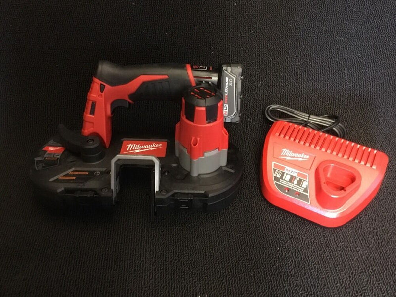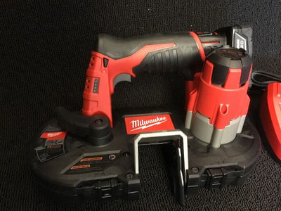 The Milwaukee 2429-21XC M12 Sub-Compact Band Saw is the most compact and lightest weight cordless band saw on the market. At less than half the weight and size compared to a traditional deep cut band saw, the M12 Band Saw provides one-handed power and portability to electricians, maintenance professionals, and other users cutting small diameter materials. The M12 Band Saw weighs only 6.75 lbs and 12 in. in length, making it ideal for overhead or one-handed cutting applications. This powerful saw can cut through 3/4 in. EMT in only 3 seconds, and will deliver over 150 cuts per charge with the included M12 REDLITHIUM XC High Capacity battery. With a 1-5/8 in. x 1-5/8 in. cut capacity and low vibration, the M12 Band Saw performs clean cuts on the most common small diameter metal cutting applications. The M12 Band Saw also features a dual-latching lower guard that covers the blade outside the active cutting area, addressing OSHA guarding requirements and making the tool suitable for one-handed use. The tool also includes a variable speed trigger, and LED light. Backed by Milwaukees 5-year warranty the 2429-21XC comes equipped with (1) M12REDLITHIUM XC High Capacity battery, 30-minute charger, (1) 18 TPI metal cutting blade, and a hard carrying case. The M12 Sub-Compact Cordless band saw should be used only with Milwaukee 48-39-0572 Sub-Compact Portable Band Saw Blades.