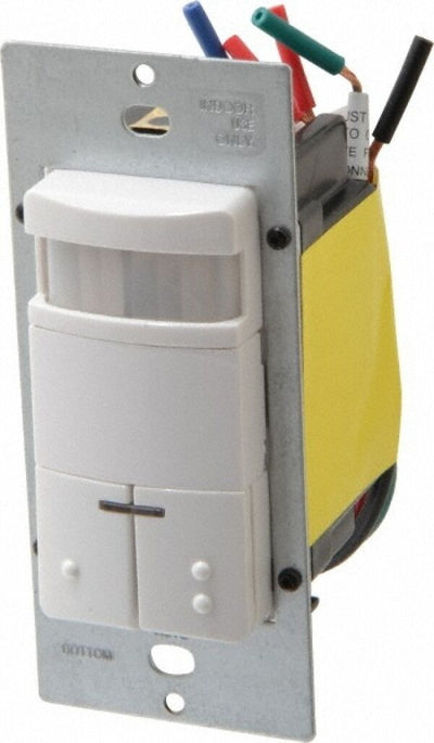 Motion Sensing Wall Switches; Type: Wall Switch Sensor; Coverage (Sq. Ft): 2,100; Range: 30 Sec. - 20 Min.; Incandescent Watts at 120V: 800; Fluorescent Watts at 120V: 1,200; Color: White