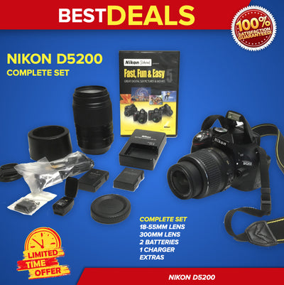 Nikon D5200 24.1MP DSLR Camera Black + 18-55mm + 3000mm AF Lens, GREAT CONDITION