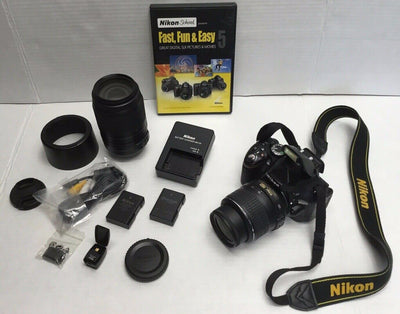 Boost your photography skills with this Nikon D Digital SLR Camera. Perfect for larger prints, this DSLR camera features 24.1-megapixel resolution to capture enhanced detail. An optical zoom of 3.1x is featured in the camera for photographing subjects that are far away. The Nikon camera has a USB port, which makes it easy to transfer your vacation shots to your laptop. Snap stunning travel photos with this Nikon D Digital SLR Camera. IT COMES WITH: 18-55MM LENS 300MM LENS 2 BATTERIES BAG EXTRAS ALL YOU SEE IN THE PICTURES IS INCLUDED | |