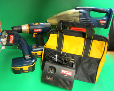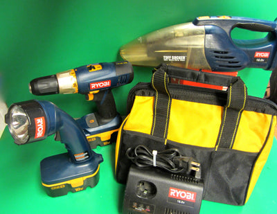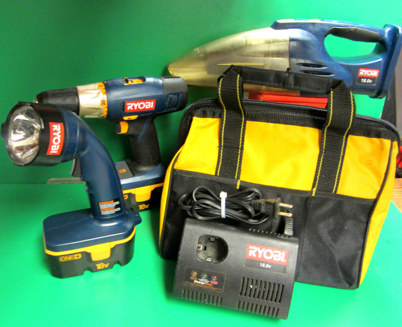 RYOBI MULTI-TOOL SET (DRILL [P204]/FLASHLIGHT [P700]/VACUUM [P710])-FINAL SALE