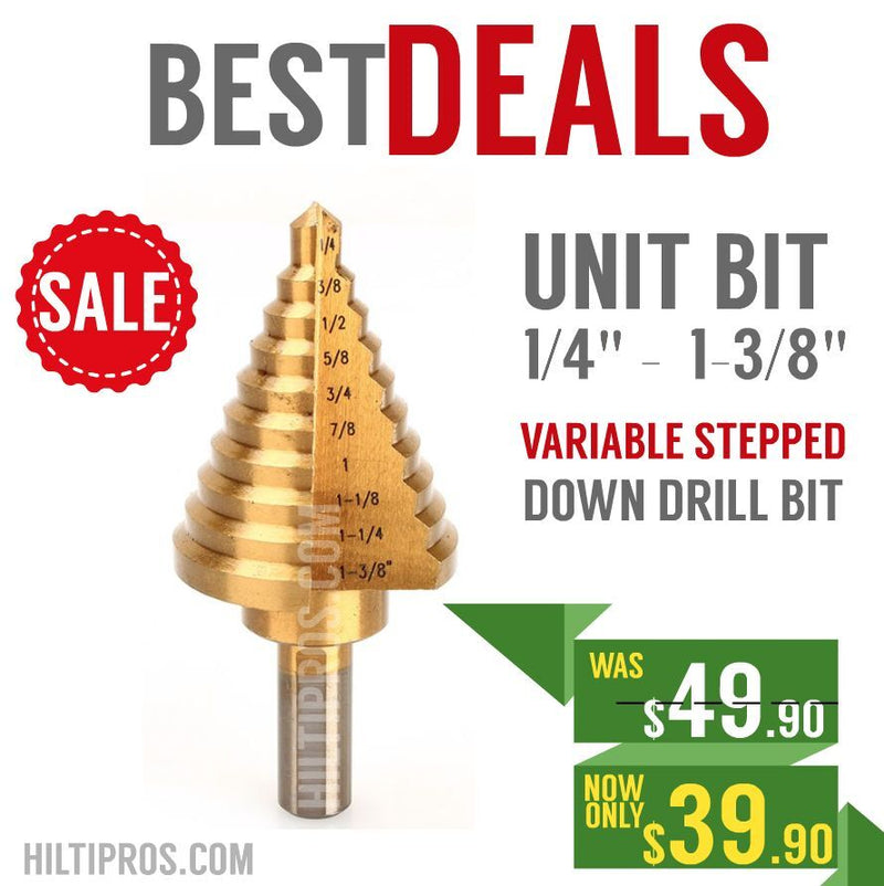 UNIBIT 1/4"-1-3/8" TITANIUM STEEL METAL VARIABLE STEPPED DOWN BIT, FAST SHIP